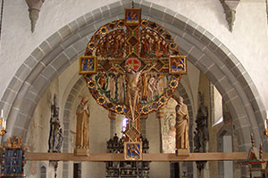 Kyrkan är en stenkyrka vars äldsta delar härrör från 1200-talets början. Den innehåller ett flertal konsthistoriskt intressanta målningar samt Nordens enda stående triumfkrucifix. Kyrkan är mest känd för sitt triumfkrucifix samt den vackra "Öjamadonnan"